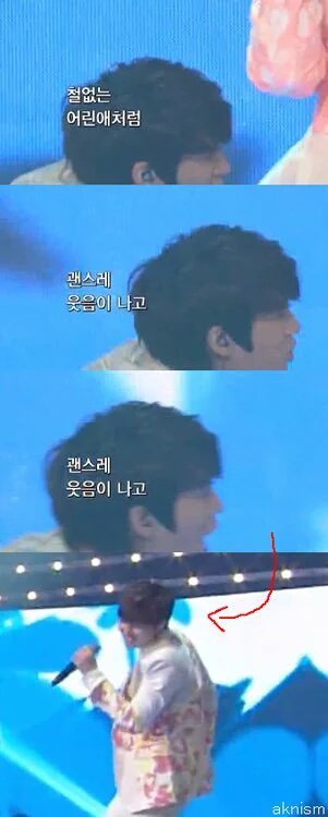일있었을때 규기분 신경쓰면서 무대서 눈마주치면서 웃어주는 횬.실제로 "웃어 웃어" 이랬음