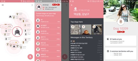 1. 모두가 8마리의 개 중 한명이 됨2. 회원가입 같은거 없음. 이름 성별 나이? 이런것도 없음3. 그냥 모두가 Dog Number를 부여받아서 익명이 됨4. 반경 1.6키로 이내 유저들한테 마구 짖어댈 수 있어5. 서로 간단한 대화도 나누고 그래