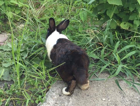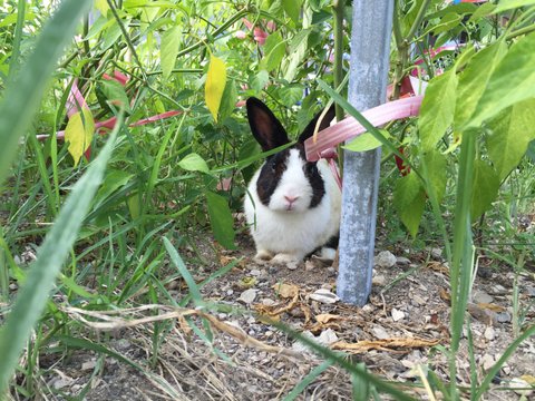 토끼주인을 찾느라 몇일 수소문 하다가 이야기를 들어보니 근처 아주머니 집에 있던 토끼였고 ~ 그 집에서 어떤분께 토끼 두마리를 받아왔다하더라구요. 그 아주머니는 토끼집을 폭염때 땡볕에 놔두어서 한마리는 죽고 다른 한마리는 살아있었구요 ~ 그 아주머니가 닭장에다 남은 한마리 토끼를 넣어놨다는데 토끼가 어떻게 나왔는지 탈출해서 저희가게 텃밭에 있네요 ~ 원래 이 토끼를 데리고 있었던 그 아주머니도 토끼를 찾아가지 않으시고, 제 생각에도 아주머니 집에서 그렇게 지낼바엔 저희 텃밭에 자유롭게 지내는것도 좋다고 생각해요.