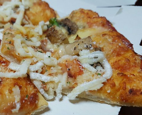 도xx피자는 원래 텁텁한맛의 생치즈를 위에 올려주나봐요