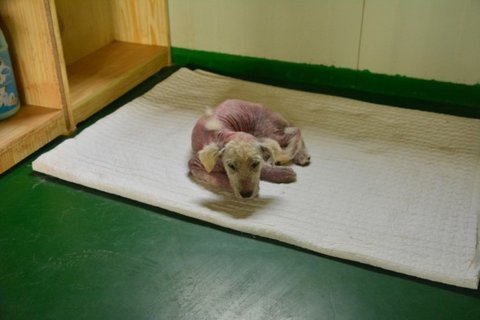 노끈을 보니 아이들 상태에 비해비교적 새것인것을 알 수 있었습니다.집에서 키워지던 아이들이 피부병을 앓자그대로 방치하다가 치료할 시도도 해보지 않고아이들을 가차없이 버린 것으로 추측되었습니다.