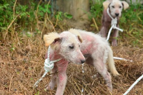 [구조소식]피부병이 가득한 몸으로폐가에 목이 묶인채 버려져있던산이와 들이를 구조했습니다.