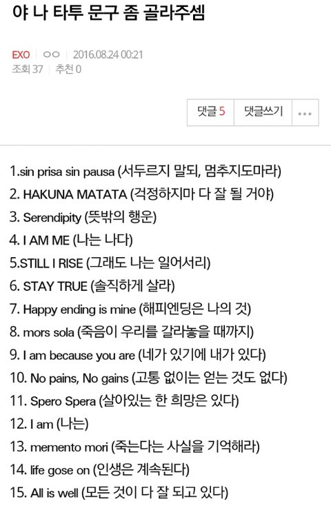 타투 문구 좀 골라주셈