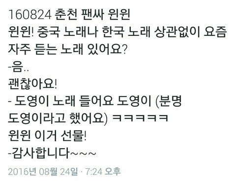 춘천 팬싸후기1) 윈윈이 요즘 자주 듣는 노래