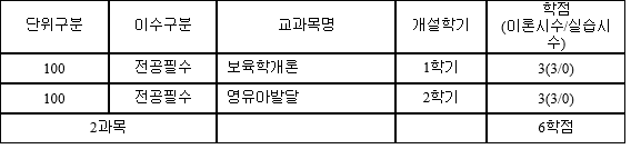 교양교육과정(14학점), 핵심교양 교과목(12학점), 균형교양(9학점)