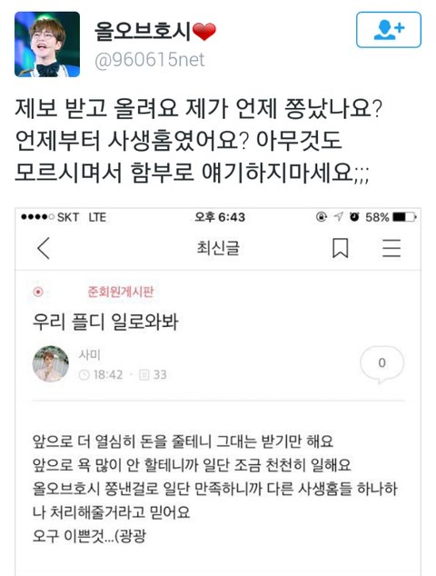플레디스에 1회 적발된 홈마중 한분인데ㅋㅋ