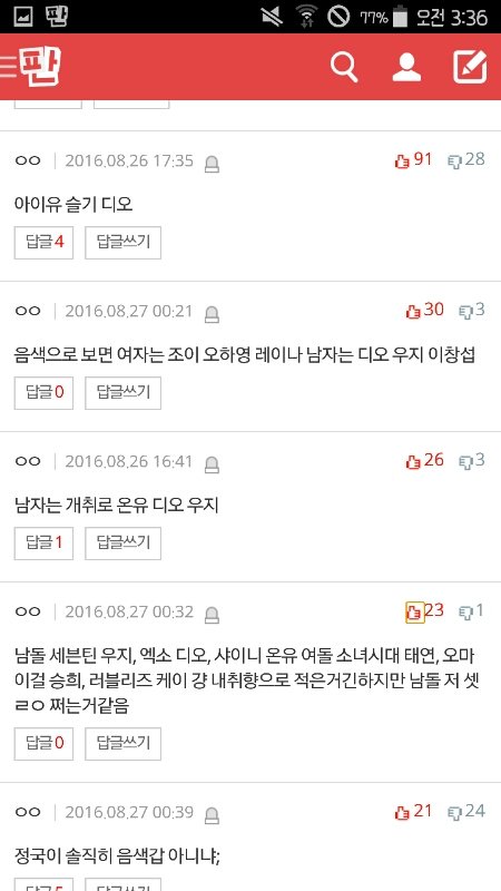 추천수 많은 댓글에 우지 언급 많다ㅜㅠ 다들 우지 음색 좋다고 생각하나봐 감동ㅠㅠㅠ 중간중간에 도겸도 있당 베플에도 우지있는데 추천 누르자!!!!
