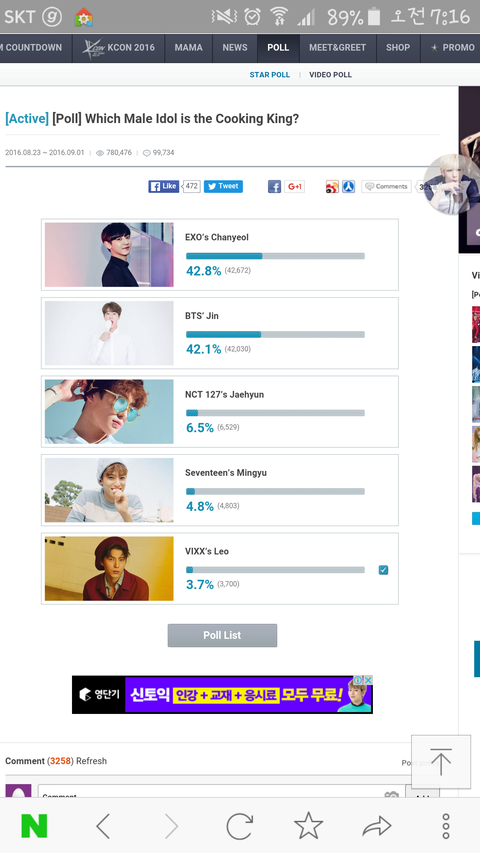 이거 가입따로 필요없고 짹이나 얼굴책 이나 톡 계정만 있으면 하루1번 투표가능하니까 투표하자