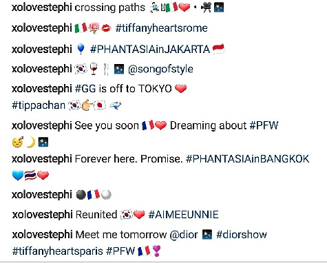 티파니는 그동안 해외를 갈 때마다 인스타그램에 그 나라 관련 국기 이모티콘을 항상 올려왔습니다.