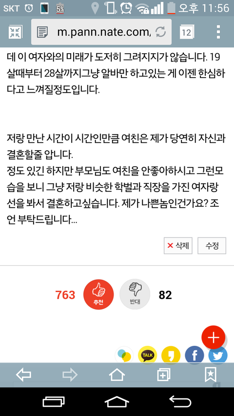 무튼 이런거 말고 더 있긴 한데 제가 그러려니 무심코 지나쳤던 것들을 다시 생각해보니까 답답하고 이 여자와의 미래는 어려울 것 같아서 더이상 붙잡고 있어봤자 둘 다한테 안 좋으니까 결국 헤어졌네요. 제가 글 쓰고 진지하게 말 하니까 일 알아보겠다고 했었는데 적어도 그렇게 말을 했으면 뭐 알아보는 척이라도 해야 하는데 그런 것도 전혀 없고 그냥 알바 끝나고 집 오면 핸드폰 컴퓨터 하거나(차라리 책좀 읽지..) 자거나 빈둥빈둥....