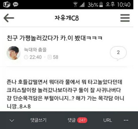 지금 8월 가평에서 수상스포츠하는 카이 크리스탈 목격한 사진이 올라와서 난리남