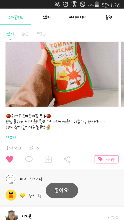 처음에 아무글이나 하트 누르면 좋아요 뜨는데