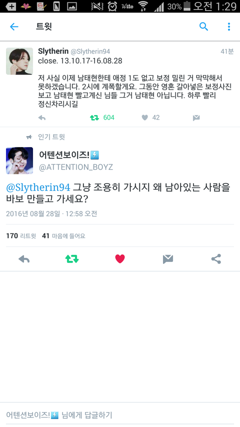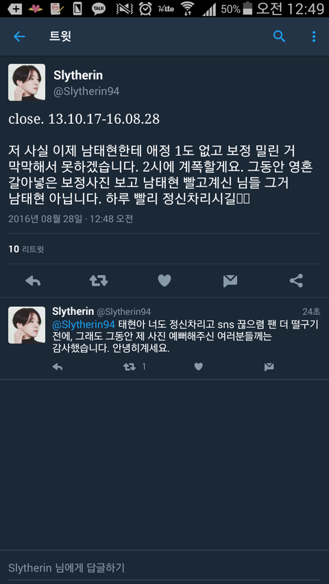 남태한테 애정이 식었다고 트위터에 허위사실을 유포하며 태현이를 공개처형 시켜버림