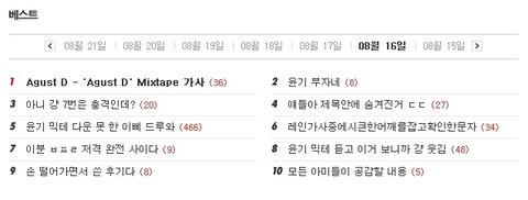 이날 베스트가 다 윤기믹테 이야기야ㅋㅋㅋ