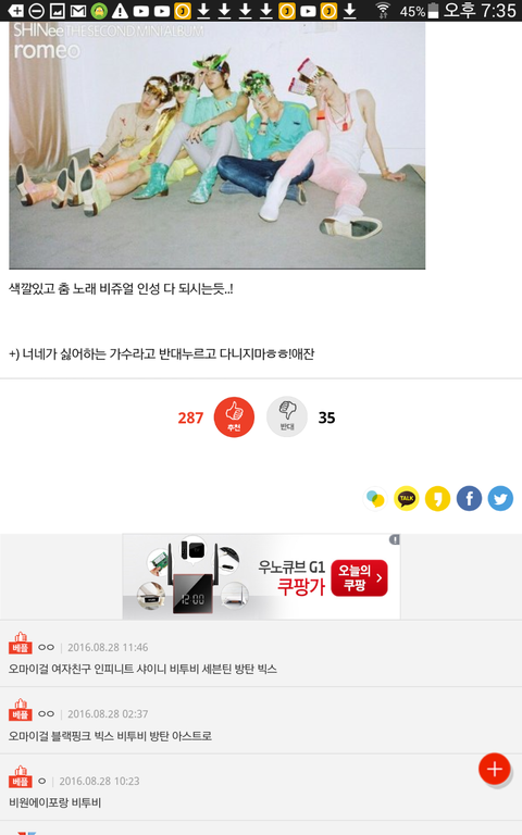 호감인 아이돌 말하는건데 우리애들이 베플 3개중 두번이나...! 너무 기뻤으ㅠㅠㅠ
