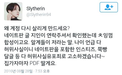 이분이 '추잉껌 많이들어주세요'(nct노래) 라고 쓴 트윗이 거짓이고 나와있다싶이 이사실을 퍼트린 사람들을 허위사실유포죄로 고소하겠다고 올라옴
