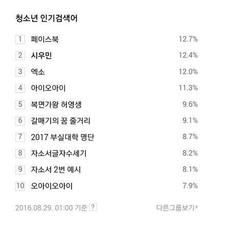 160829 4시 시우민 네이버 청소년인검