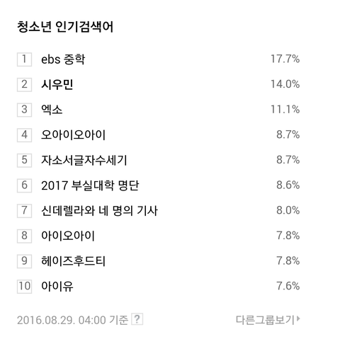 160829 4시 시우민 네이버 청소년인검