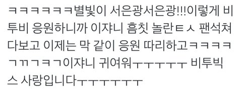 별빛들 다른팀이고 뭐고 비투비 응원하는거 씹귀이곸ㅋㅋㅋㅋㅋㅋㅋ멤버들도 놀래서 쳐다보기 ㅋㅋㅋㅋㅋㅋㅋㅋㅋㅋㅋㅋㅋㅋㅋ 사랑해 비투빅스 !!!!!!