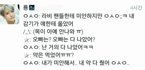 감기 옮겨서 약 다줬대ㅋㅋㅋ큐ㅠ진짜 정택운ㅋㅋ넘귀엽(주먹울음