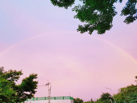 하늘색 로즈쿼츠&세레니티 같지... 어제 독서실 갔는데 무지개 떠서 나와서 찍은거야! 다른 캐럿이 집에서 찍은거 보고 그냥 생각나서