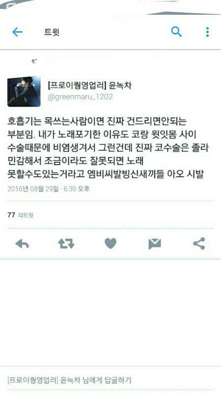 ... 정택운 노래 못하게 되면 진짜 엠비씨 아육대 관계자들 코뼈 똑같이 부셔버릴꺼야