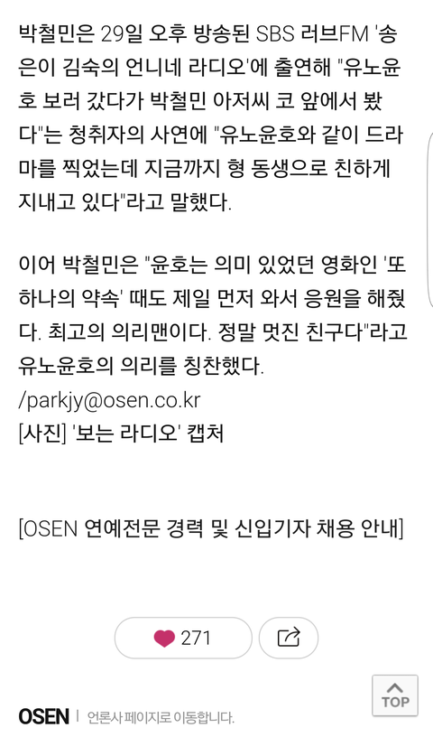 우선 박철민배우님 내가수 언급해주셔서 감사합니다ㅠㅠㅠ