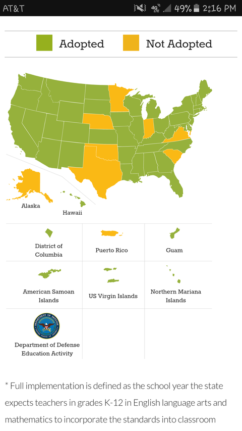 우선 미국의 교육 방식이 2009년에 탈바꿈 하였는데요, 그 이유는 바로 Common Core State Standards (공통핵심학력기준/규범) 때문입니다. 현재 미국의 42개 주와 District of Columbia (Washington D.C.)가 이 규범을 따르고 있는데요, 제가 살고있는 메릴랜드역시 포함되어있습니다. 그 주/지역들에 있는 모든 학제들 (school systems)은 유치원에서부터 시작하여 12학년 (한국의 고등학교 3학년)때까지 이 규범을 지켜야 합니다.