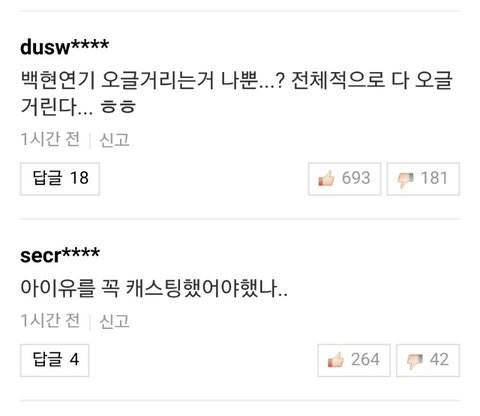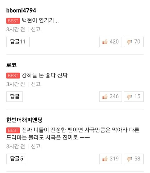 대형여초에서는 백현 발연기로 댓글이 무려 4천개넘게 달리고 드라마갤에서는 백현을 빨리 하차시켜라고 심각하게 논란됐어