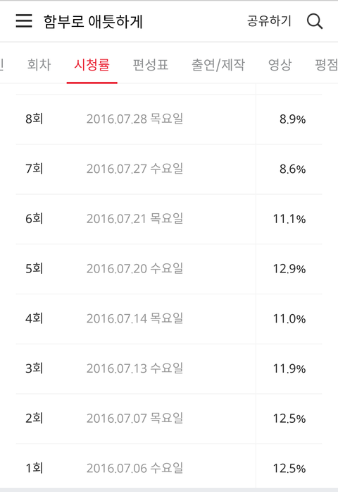 수퀴들이 날뛰는거 같아서 망틋 W 시청률비교