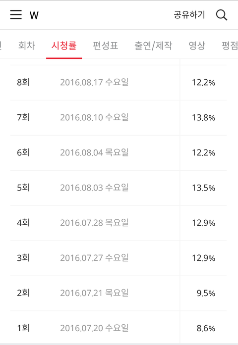 수퀴들이 날뛰는거 같아서 망틋 W 시청률비교