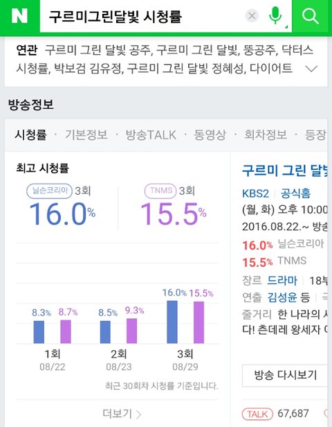 역시 시청률이 말해주는듯 물론 닥터스 종영 힘도 컸지만 1~3회 다봤는데 1~2회는 딱 시청률 8 나올만했고 3회는 내용도 재밌고 박보검 연기도 소름이였음 앞으로도 더더 올랐으면 !!!