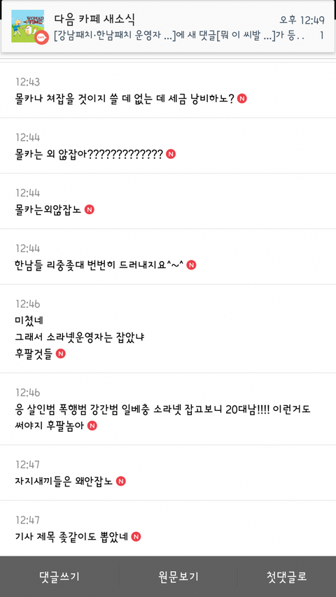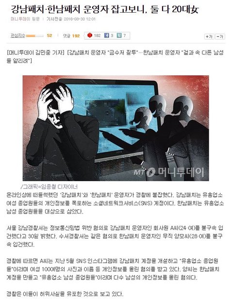 확인되지 않은 사실을 얘기하던 강남패치, 한남패치를 검거함.