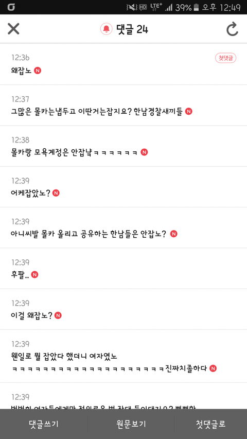 왜 잡았냐면서 뭐라하고 몰카충은 어쩌고 쟤네들을 잡았냐며 화를내고