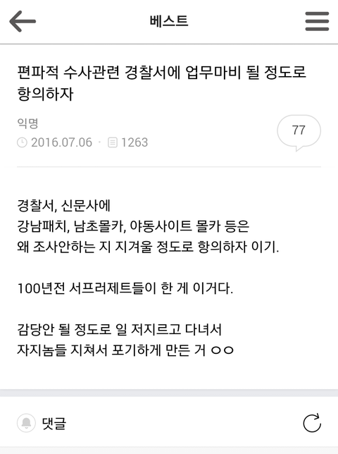 강남패치는 왜 수사하지않느냐고 화를내며 항의전화를 넣으신