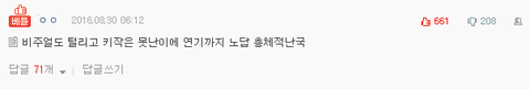 차라리 사고나 죽어서 못나왔으면 좋겠다느니 너무 심한말들을 많이들어서 솔직히 지금 엄청 서러워 너네도 너네가 좋아하는 가수가 연기 도전해서 영화나 드라마 나온다고하면 그래도 응원해주고 싶고 기대도 되고 그런마음일텐데 네가 소중한줄알면 남도 소중한줄 알아야지 응원해주려는 마음들에 나오기 전부터 욕먹고 하다하다 별얘기까지 다 듣게 만든다 뭐가 그렇게 아니꼽고 배아파서 하는일들마다 눈에 불을켜고 싫어하는지 모르겠는데 꼭 다 부메랑으로 너네한테 돌아가길 바란다 제발