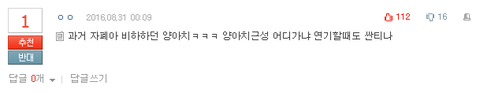 그래 __ 팬이니까 도전자체를 응원해주고 싶고 그런 마음인데 무작정 쉴드치고 지랄하네 뭐네 이러는거 계속 원작원작거리면서 지랄한다는게 너네가 조카 오바한다고 까는부분에서 원작이 그래라고 말했던 부분인데 그걸 멋대로 해석해서는 무조건 쉴드치는 팬덤으로 몰아버리고 연기 어색했다는거 알겠다는 팬들은 두고 팬콘지 어그론지 구분도 못하겠는 빼액질에 엑퀴라고 단정짓고ㅋㅋㅋㅋㅋㅋㅋㅋㅋㅋㅋㅋㅋㅋㅋㅋ