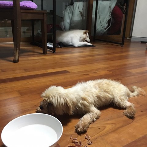 깡마른 몸을 보며 보호소에서 한끼라도 제대로 주긴 한것인지 허겁지겁 캔을 두개나 뚝딱 하는 모습에 할말을 잃고 말았습니다.