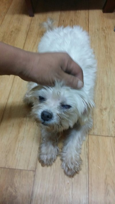 2.7킬로 깡마른 작은 체구의 말티즈 아롱이는 발가락 사이가 벌어져 제대로 서질 못하며 뒷다리 근육이 위축되어있는것으로 보아 그동안 철장에 갇혀 6년 동안 제대로 서지도 걸어본적도 없는 생활을 해왔습니다.