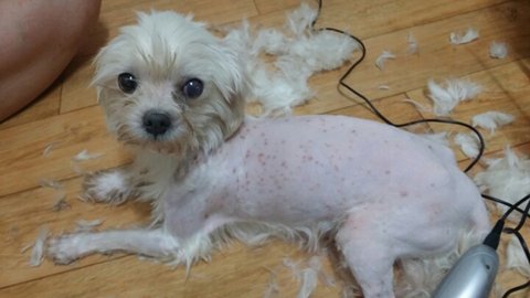 공고 마지막날 이동봉사자를 구해 안락사만이라도 막으려 데려온 아이는 가는 병원이 늦은시간이라 문을 닫아 일단 목욕이라도 씻기려하였는데 아이상태가 처참하기 그지 없는 모습이였습니다.