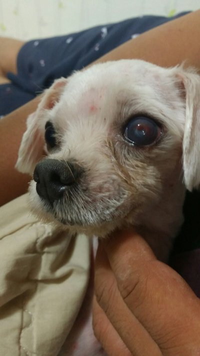 오른쪽눈은 보호소에서 각막궤양이 의심된다지만 송곳으로 찌른듯하게 움푹 패여있었습니다.