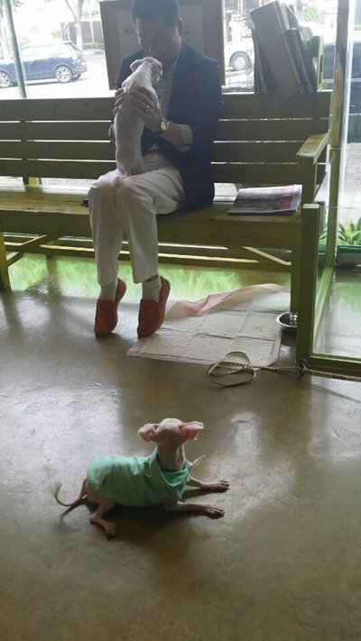 몸에 비해 고환이 크다는점과 뒷다리에 힘이 없어도 암컷에게 관심을 보이는 행동에 번식장에서 살아온것으로 추정이 됩니다.