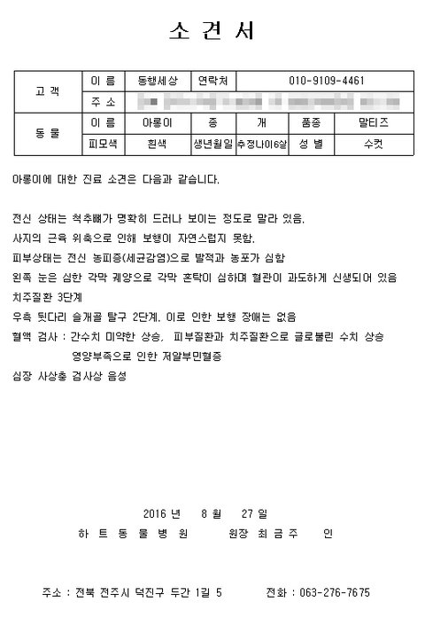 아롱이의 구조전의 생활를 생각하면 지금도 가슴이 아파 마음이 찢어지는것 같습니다.