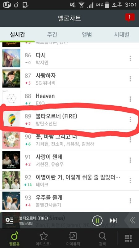 5화 불타오르네 8/31 1시 차트