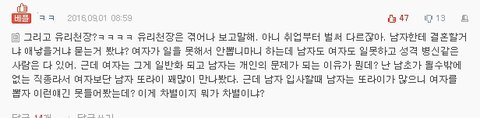 여자들 특유의 물타기로 일베충으로 몰아가겠지 ㅋ
