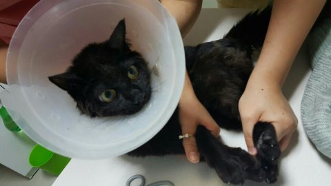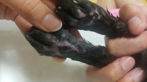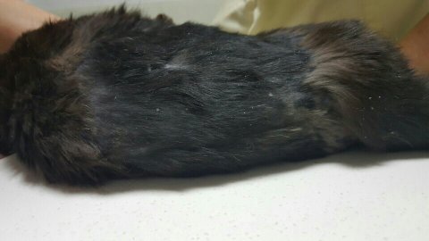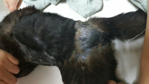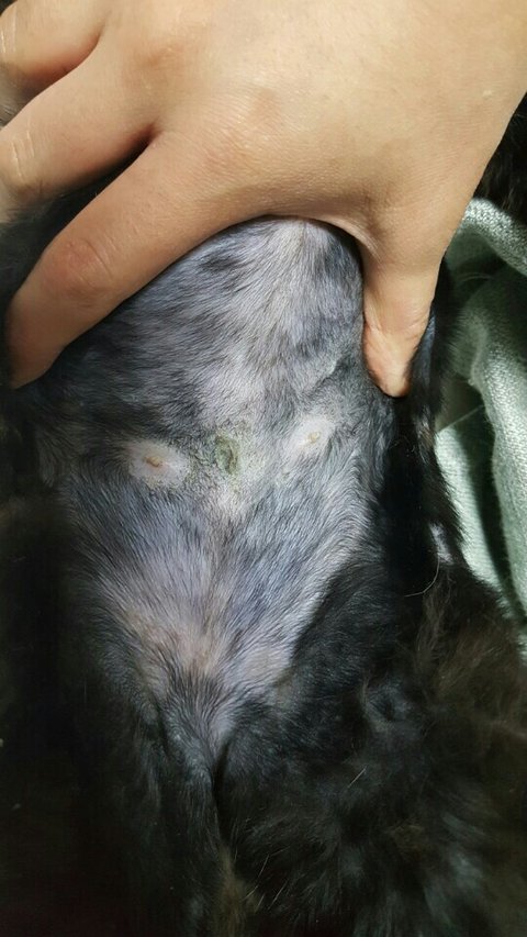 뒷발과 등쪽 그리고 중성화 수술까지 모두 깨끗하게 상처가 다 아물어서 털까지 자란 상태입니다.