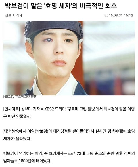 박보검이 맡은 효명세자의 비극적인 최후