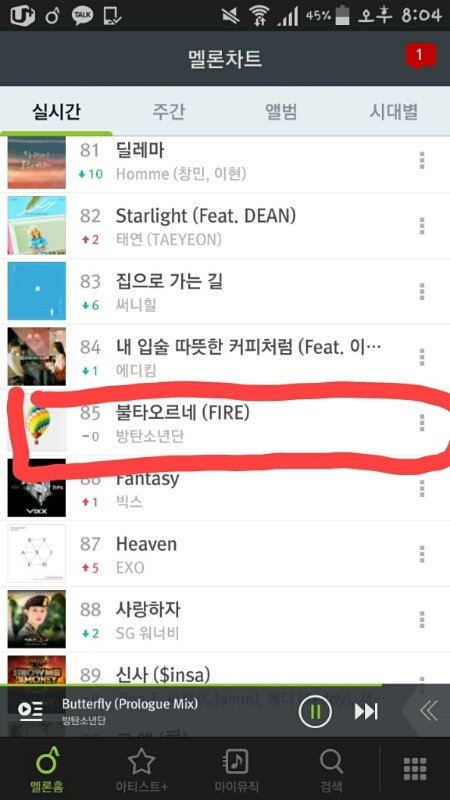 불타오르네 8/31 8시 차트