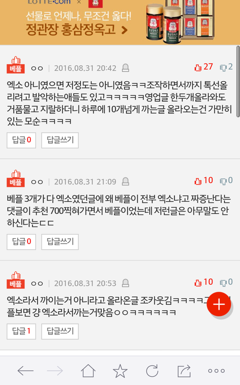 베플에 추천좀 눌러놔ㅠㅠ조작충이 새벽에 조작해서바꿈