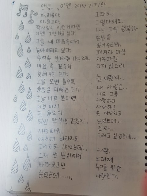와 미쳤다ㅋㅋㅋ 옛날 공책 정리하다가 초6때 짝사랑에 가슴 아파하며 쓴 시를 찾아냄ㅋㅋㅋㅋㅋㅋㅋ 혼자 부끄러워서 계속 끅끅 거리고 있다... 나보다 더 엄청난 흑역사 소유자 있니? 톡선되면 이 문제의 남자애에 대한 짝사랑 후기 올린다ㅋㅋㅋ